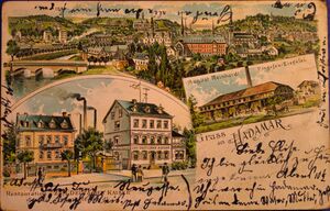 Die Innenstadt von Hadamar ist vom Steinbruch her gezeigt, also aus Richtung Süden. Das Ensemble aus der Gaststätte und dem Nebenhaus wird von der Neuen Chaussee bzw. vom Bahnhof her gezeigt, also aus Norden. Die Ziegelbrennerei lässt sich nicht genau einordnen.